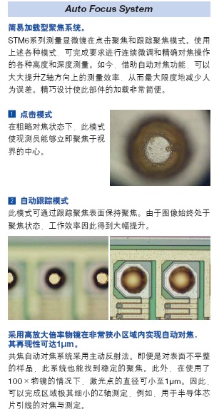 為了提高測(cè)量精度,減少人為誤差,奧林巴斯提供了激光自動(dòng)聚焦和輔助聚焦兩款系統(tǒng)供客戶選擇.